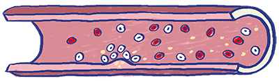 Quando as células são incapazes de absorver todo o colesterol que circula no sangue, o excesso deposita-se na parede da artéria e contribui para o seu estreitamento progressivo, originando um processo denominado aterosclerose.